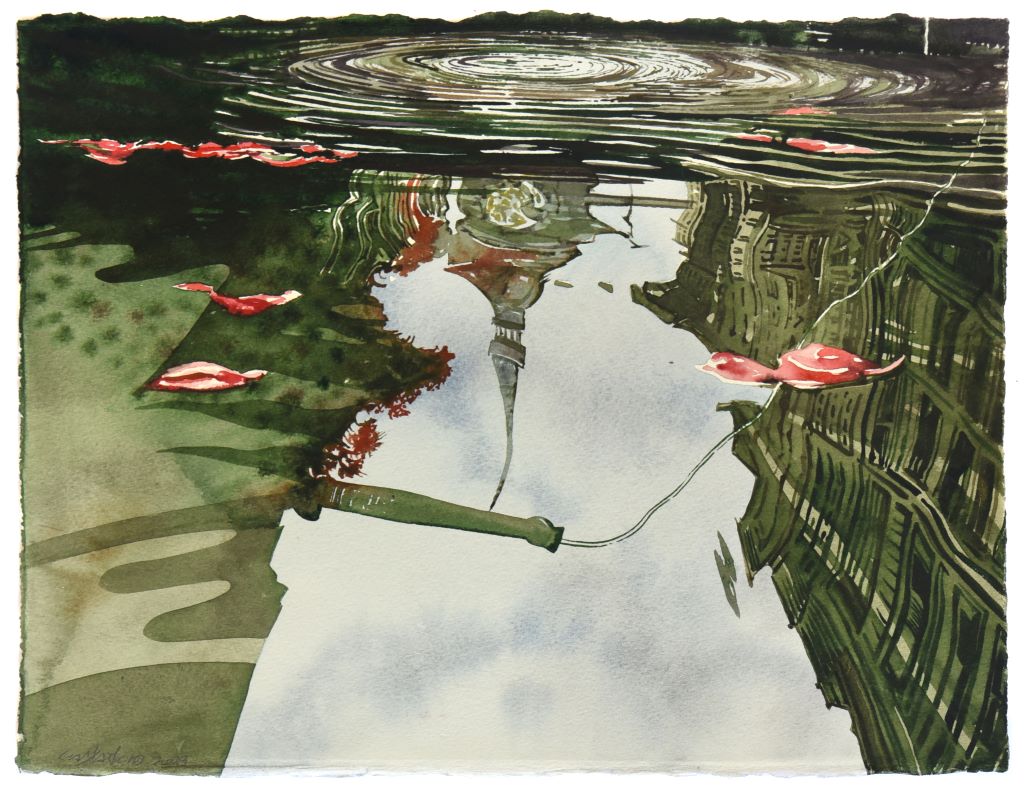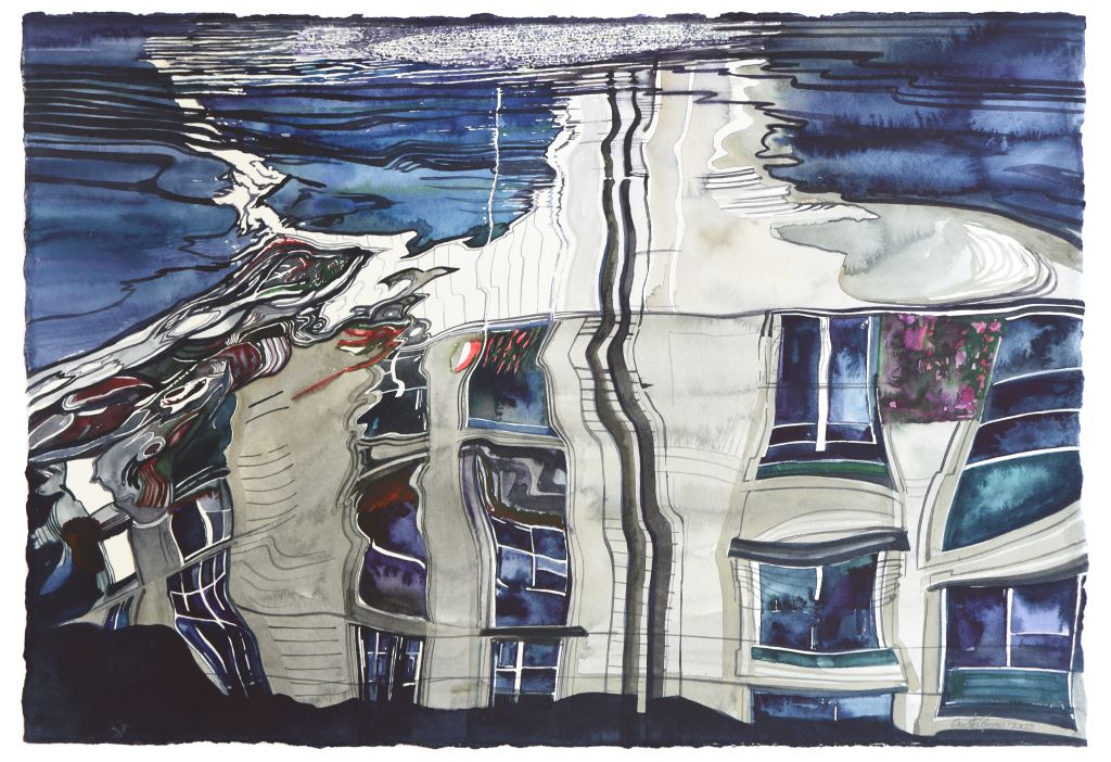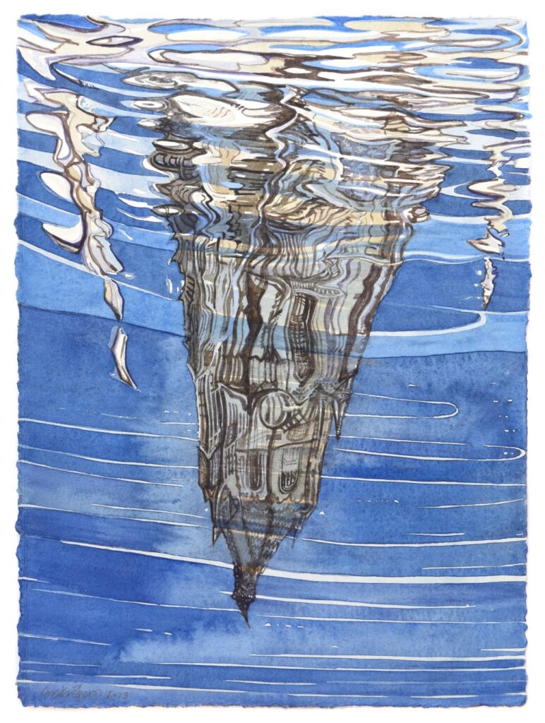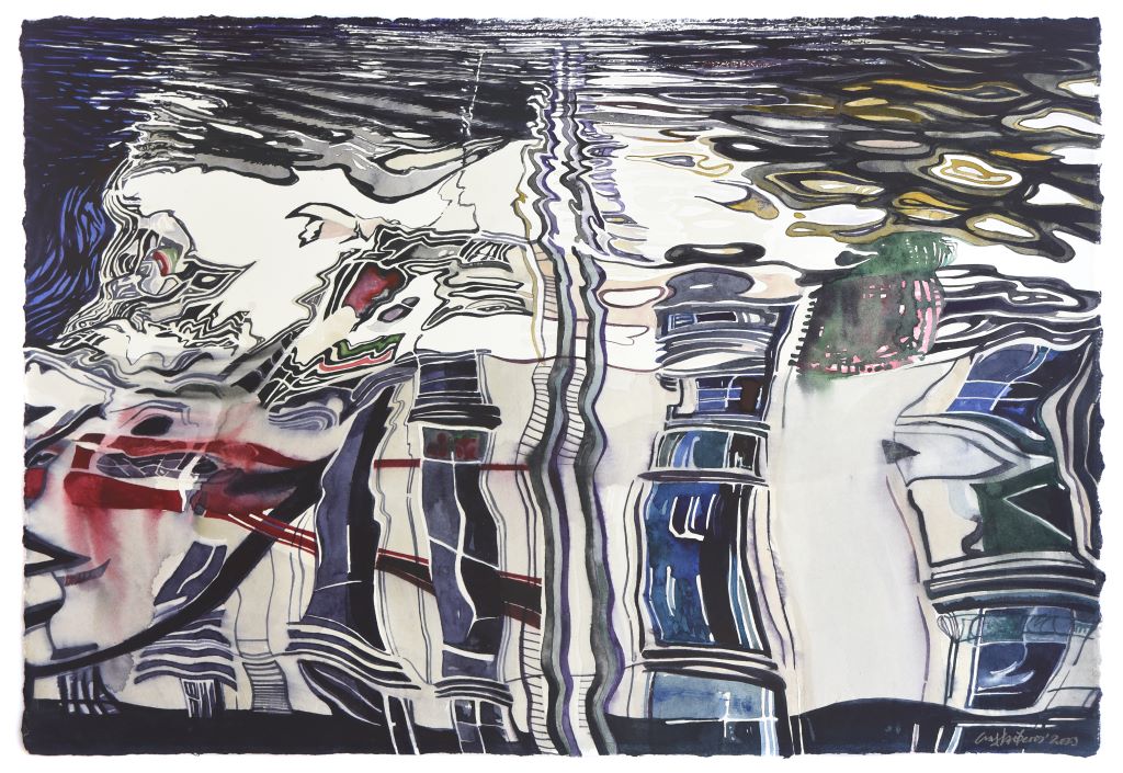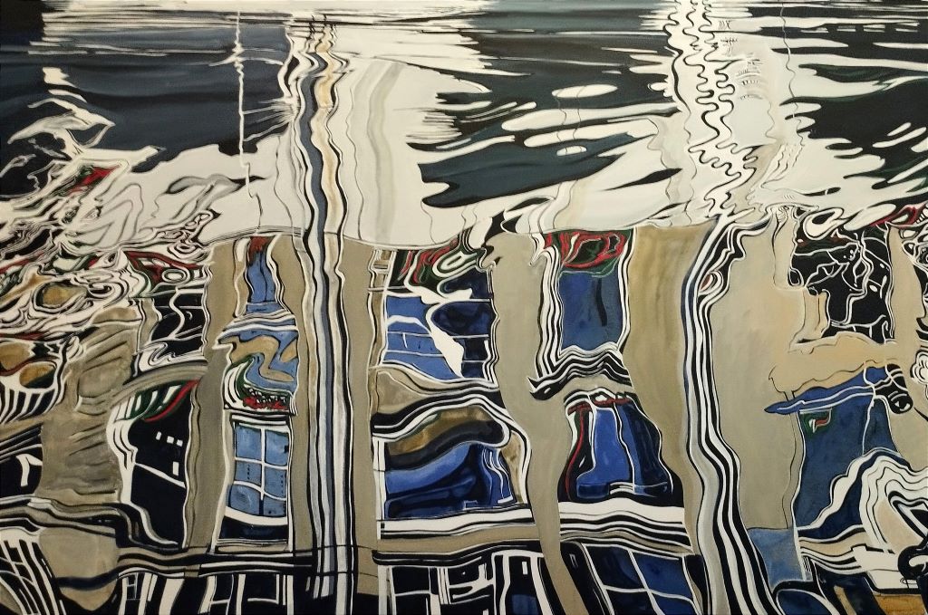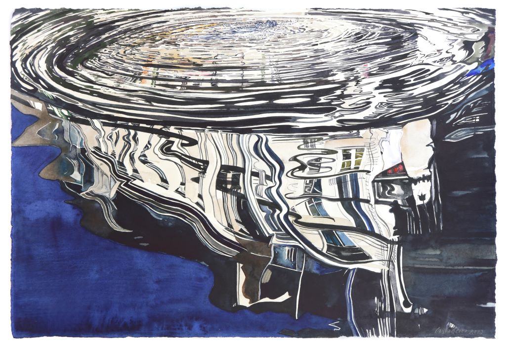 Working in a mirror manner, excavating and recreating a theme through which he has given us mutual emotions in the past, Saltaferos leads us into an immaterial reverse world that is born intuitively from the beginning, reflected with exciting painting skill and sensuous mastery. Cities and buildings, water tanks, ship hulls and traces of faint human presence, spectrums of momentary imprinted color and hues of lived place and time, are mirrored here in swirling circles or transversely woven echoes and re-raised in reverse and sequentially, reassembled through clever optical ins and outs sculptural wrinkles, Cities and buildings, water tanks, ship hulls and traces of faint human presence, spectrums of momentary embossed color and hues of lived place and time, are mirrored here in swirling circles or transversely woven echoes and re-raised in reverse and sequentially, reassembled through brilliant visual sculptural wrinkles, gradually unfolding and triumphantly proclaiming the personal Wunderkammer and possibly an allusive self-portrait of the great painter.
