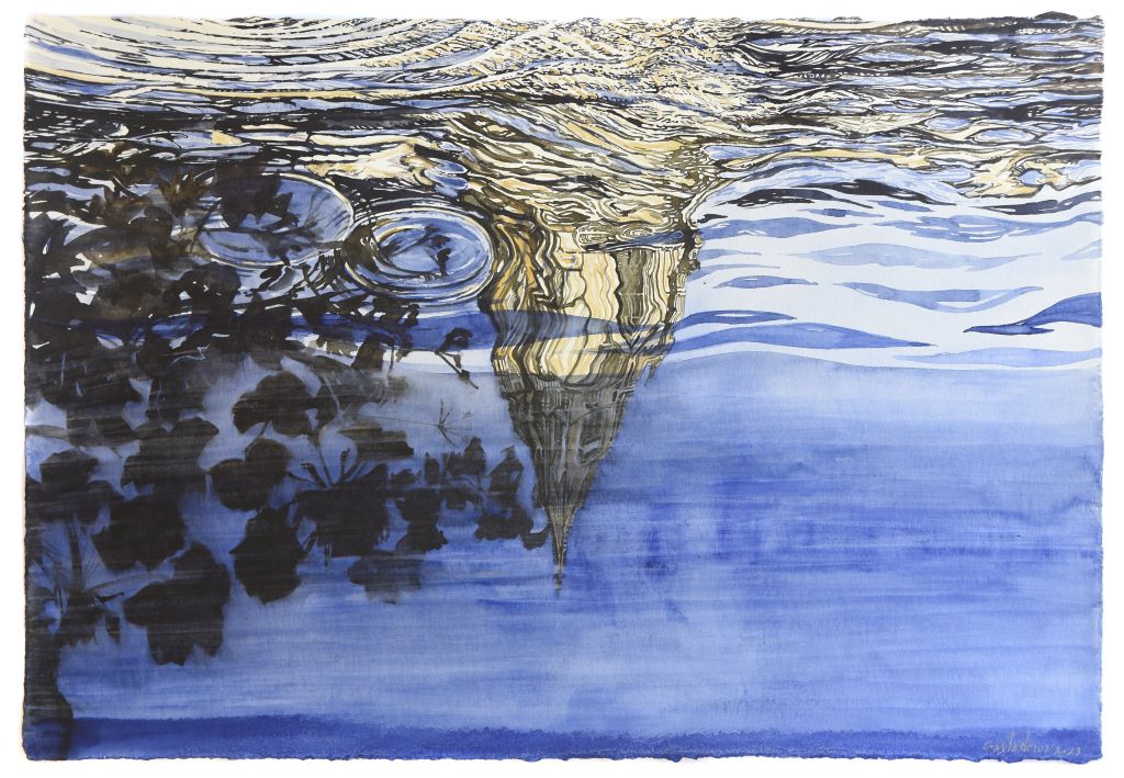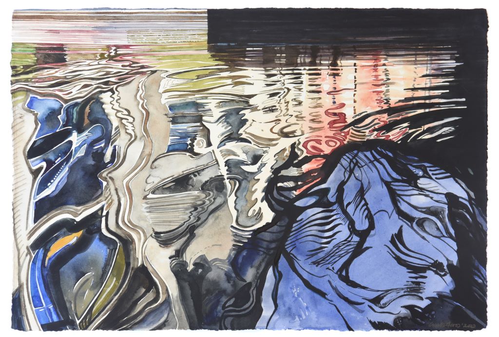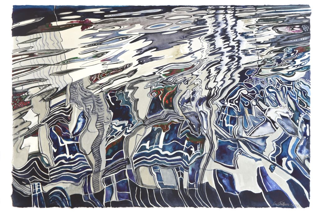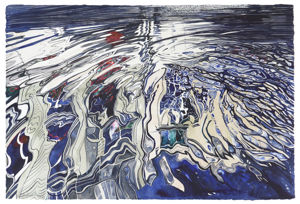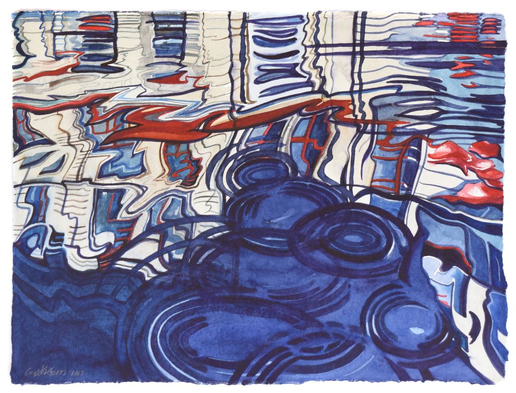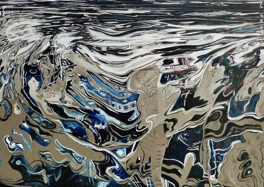 Returning with unparalleled pictorial certainty to the liquid element, a thematic and symbolic field that he knows in depth, negotiating the transitory transparent matter of water that enters here kaleidoscopically, reflecting and reimagining silent successive cosmic abbreviations that touch and stimulate the personal and collective geographical and synaesthetic memory of the viewer, Giorgos Saltaferos breaks through the barrier of the visible and the possible, inviting us to enter a magical sphere of successive instantaneous curvatures and prismatic hollow episodes, alternating illusory dioramas and rifts of true existence.