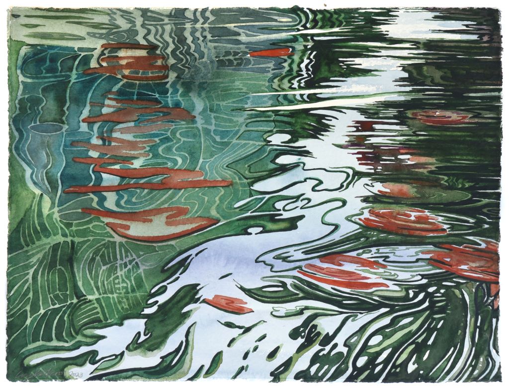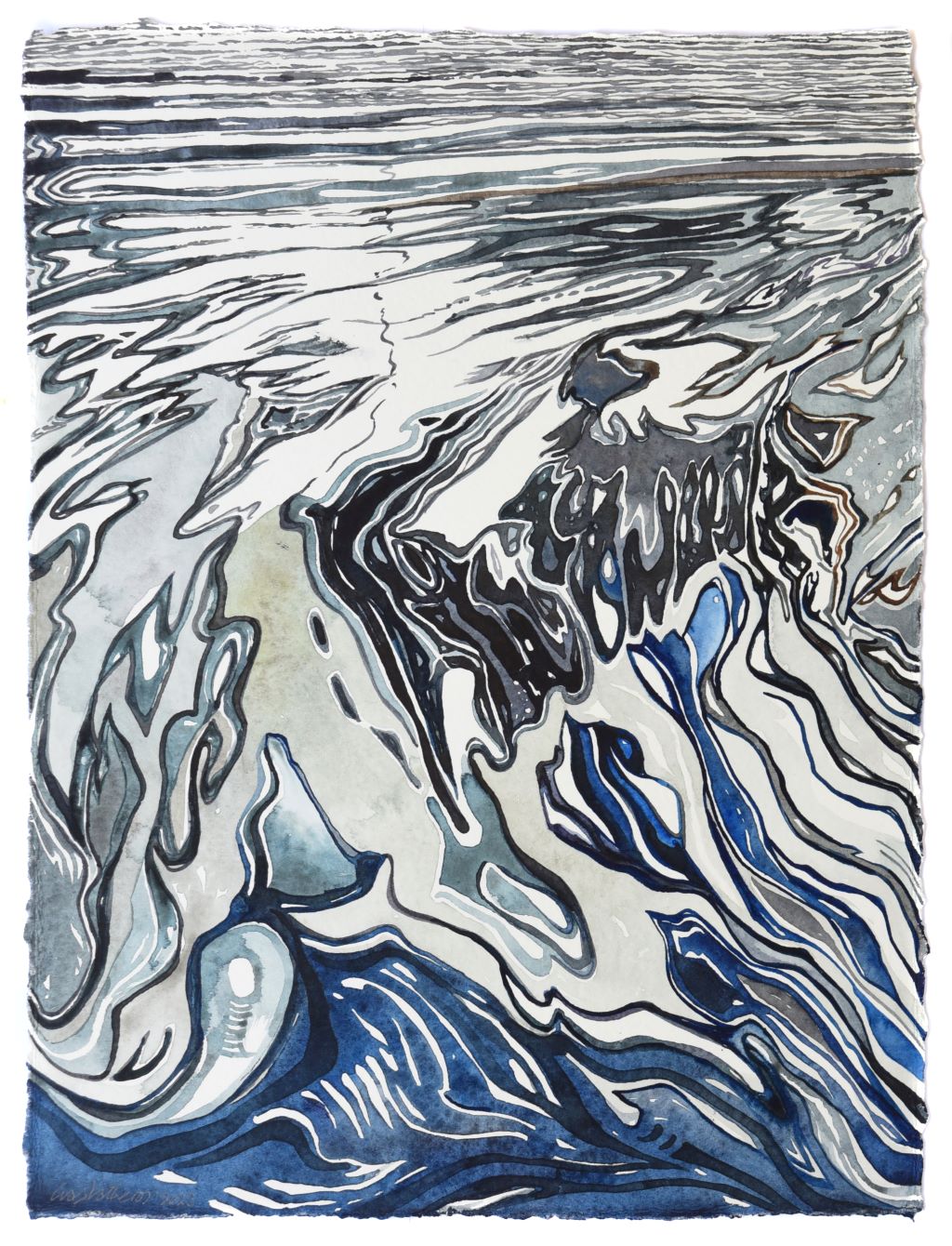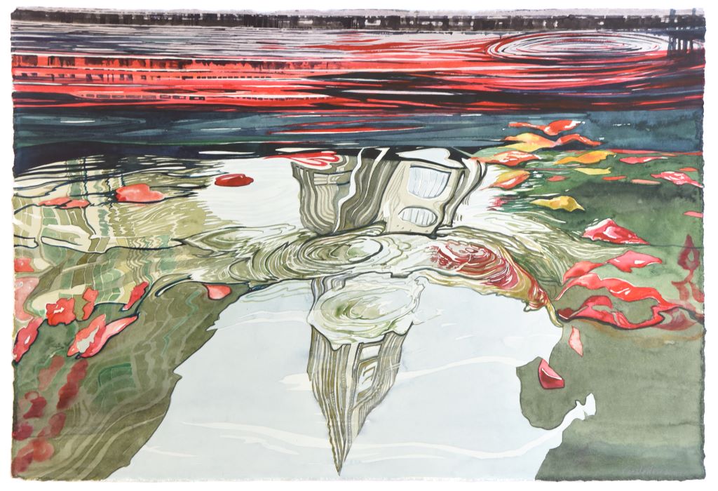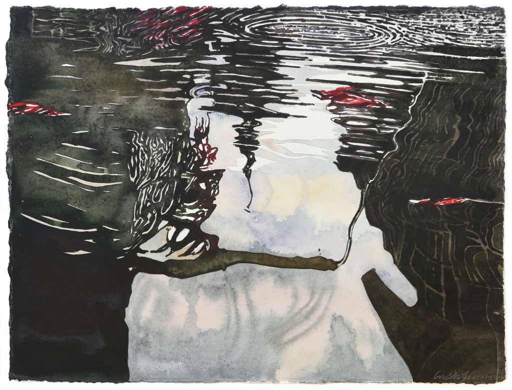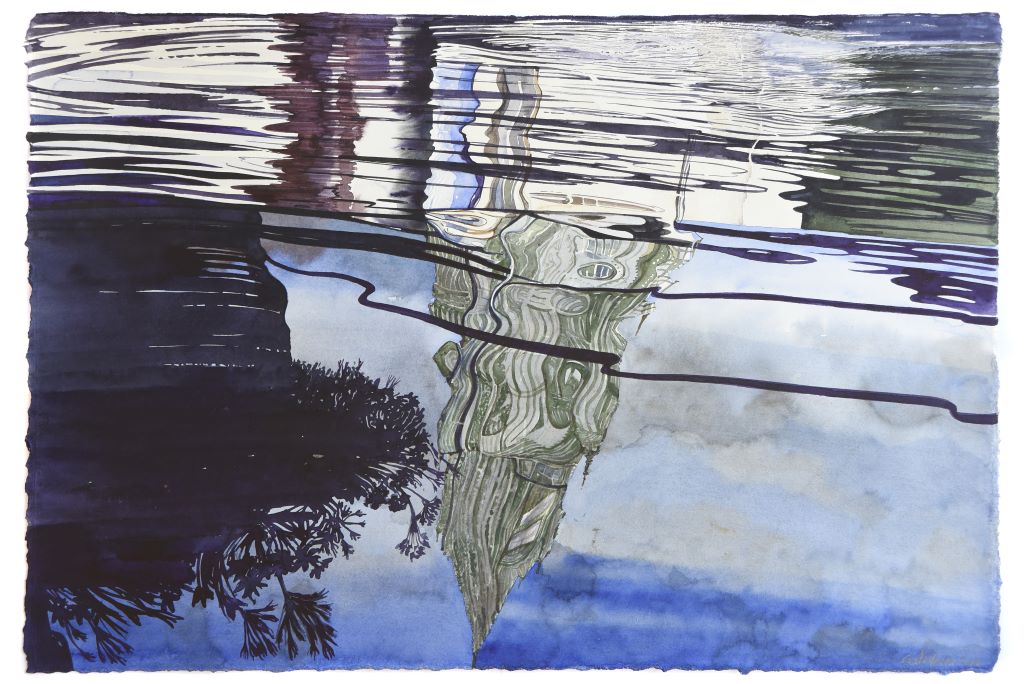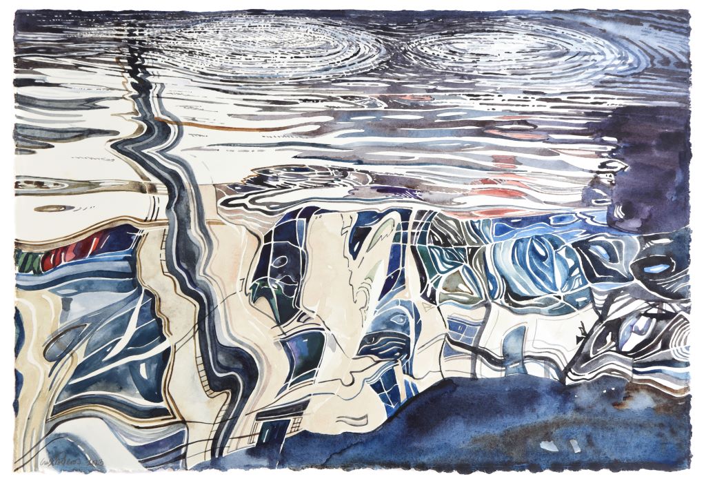 Returning with unparalleled pictorial certainty to the liquid element, a thematic and symbolic field that he knows in depth, negotiating the transitory transparent matter of water that enters here kaleidoscopically, reflecting and reimagining silent successive cosmic abbreviations that touch and stimulate the personal and collective geographical and synaesthetic memory of the viewer, Giorgos Saltaferos breaks through the barrier of the visible and the possible, inviting us to enter a magical sphere of successive instantaneous curvatures and prismatic hollow episodes, alternating illusory dioramas and rifts of true existence.